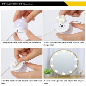 * Easy To Use: These makeup vanity lights are easy to stick on the mirror with strong double-side tapes in a few minutes. With 5V 2A USB power cord, you can connect the lights to power bank, PC or phone power adapter.